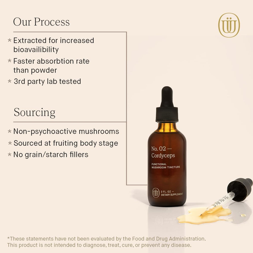 - High Potency Tincture - The benefits of medicinal mushrooms in tincture form include quick absorption, long shelf life and easily added to any food or beverage. Our tinctures use double extraction methods from the mushroom fruitbodies to more fully extract the wide range of bioactive compounds available. Also, liquid extracts are absorbed more quickly into the system, providing you with quick results.