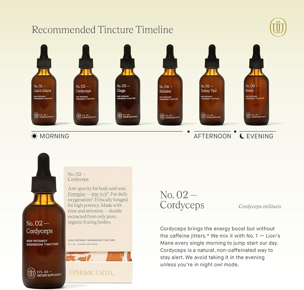 - Increase Your Energy - Uphoric Urth Cordyceps mushroom is here to help maintain your energy athroughout the day and also has been found to increase oxygen uptake. Cordyceps support the body’s production of ATP, which is the molecule that carries energy in the cells and improves both oxygen intake and lung mitochondrial function.