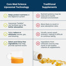 - MAXIMUM ABSORPTION LIPOSOMAL TECHNOLOGY: Unlike traditional pills and liquids, where the active ingredients get destroyed by acids in the digestive tract, Core Med Science uses Liposomal Technology to protect nutrients with a liposomal “bubble” to safely deliver nutrients into the bloodstream for optimal absorption. Provides up to 80% more absorption and is also gentler on your stomach.