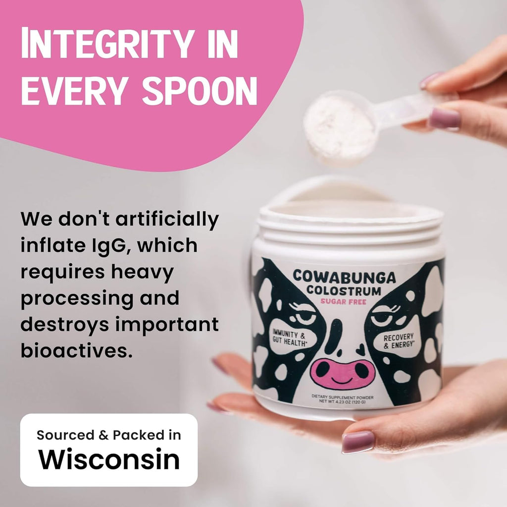 - HOW TO USE COWABUNGA COLOSTRUM: Enhancing your wellness with our colostrum powder is effortless and enjoyable. Each package includes a 3-gram scoop for easy dosing. Kick off your regimen with 3 grams per day, simply added to water, your favorite smoothie, or even protein shakes. (hot beverages not recommended as they can destroy bioactives) For those who appreciate convenience and taste, our colostrum is delicious enough to be taken straight as a dry powder — no mixing required. After two months, consider increasing your intake to 6 grams daily to further boost your nutrient absorption and health benefits.