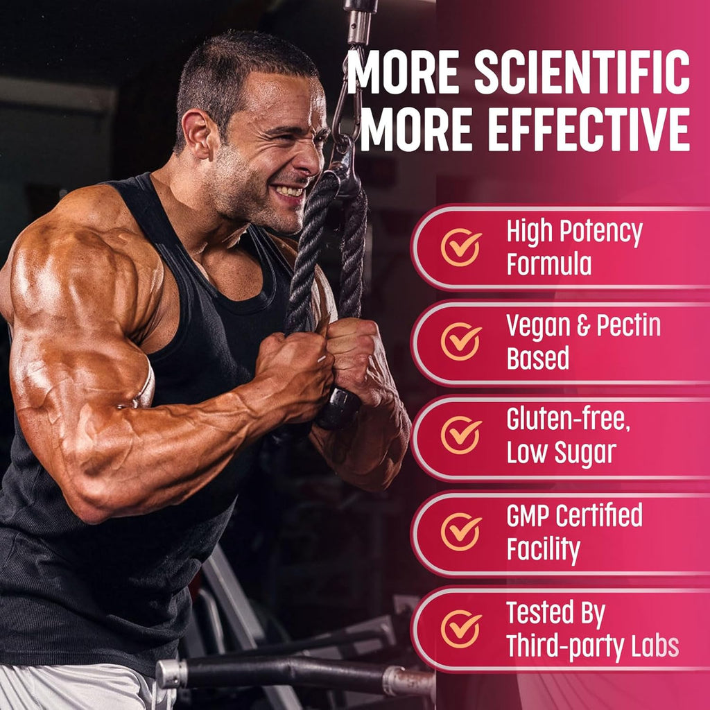 - Delicious Taste with No Bad Effects: The strawberry flavor tastes very good, gummies are very soft and chewy. You can also eat it as candy in your daily life, there's absolutely no bad effects. But there is no fitness effect if you don't combine it with exercise.