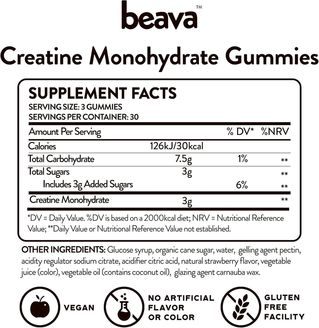 - Quality You Can Trust: Our Chewable Creatine Gummies are Vegan and gluten-free with Natural Strawberry flavor. No Artificial flavors or colors.