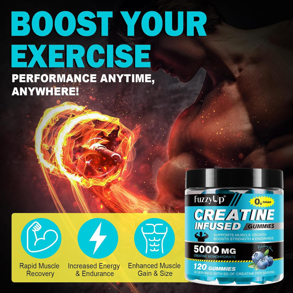 - Muscle Growth: Try our creatine monohydrate for women & men to boost your athletic performance. Take monohydrate creatine daily to enhance workout effectiveness and maximize muscle growth. Each serving of these creatine monohydrate gummies provides the fuel for your athletic performance. By boosting muscle energy production, it aids you in training harder, lifting heavier weights, and recovering faster.