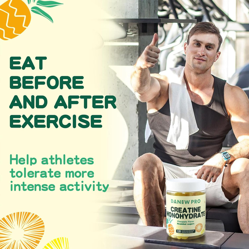 - [ Key Benefits]: Our Creatine monohydrate gummies are an easy way to consume, 3 gummies per serving, you can take it at any time, any place. It improved muscle strength, muscle recovery, improve endurance and energy boost. Suitable for a variety of users, and enjoyable taste.
