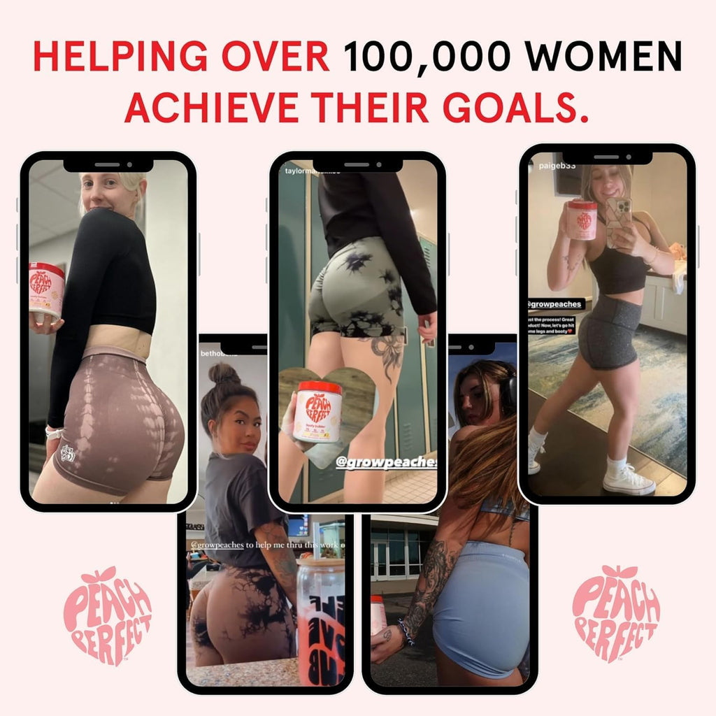 - CREATINE POWDER FOR WOMEN: Peach Perfect is a one-of-a-kind blend of the highest purity Creatine Monohydrate for Glute and muscle support, BCAAs for muscle support and Collagen for skin health support. Our peach creatine supplement is specifically formulated for women to help support muscle, particularly in the glutes and Glute.
