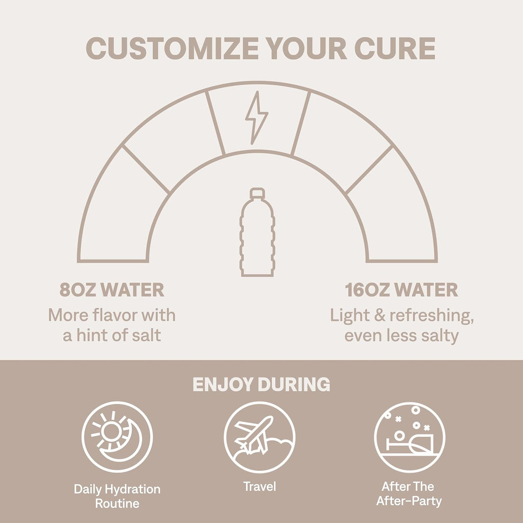 - POWERFUL DEHYDRATION RELIEF: Named by Women's Health as the Best Hydrating Drink Mix! Hydration is the foundation of health. However, science shows that staying hydrated often requires more than water alone. With 4x the electrolytes of leading sports drinks, Cure restores balance to your body so you can operate at 100%.