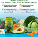 - Liposomal Glutathione 500mg Enriched with Whole Foods (1-Month Supply): glutathione is a master antioxidant & detoxifier. This formula features 500mg of the active form L-glutathione (Reduced), plus organic whole foods naturally rich in glutathione such as spinach, avocado, okra, broccoli, carrots & more for plant-powered antioxidant and immune support.