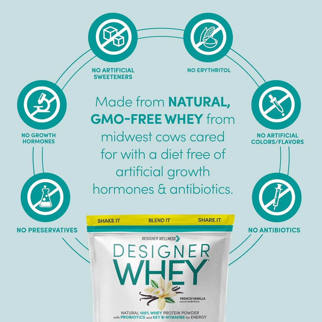Designer Whey Full Spectrum Peptides: (GMO-free and rBGH-free Whey Protein Concentrate, GMO-free and rBGH-free Whey Protein Isolate), Digestive Health Blend: [GMO-free Prebiotic Vegetable Fiber, Probiotics: (Lactobacillus Acidophilus, B. Longum, L. Plantarum), Vegetarian Protease Enzymes], Natural Vanilla Flavor, Electrolyte Blend: (Calcium Phosphate, Magnesium Oxide), Sunflower Lecithin, B-Vitamin Blend: (Calcium Pantothenate, Pyridoxine Hydrochloride, Thiamin Mononitrate, Riboflavin), Zinc Gluconate, Stevia Leaf Extract, Xanthan Gum, Sodium Alginate, Cinnamon, Monk Fruit, Annatto, Mixed Toco herols, Vitamin D3 (Cholecalciferol).