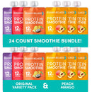 - BUNDLE INCLUDES 24 SMOOTHIES: 4 Mixed Berries, 4 Strawberry Bananas, 4 Tropical Fruits, and 12 Peach Mango Protein Smoothies