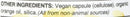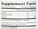 Calories 10 -- Calories From Fat 10 -- Total Fat 1 g 2% Evening Primrose Oil (Organic) 1000 mg * [Standardized to minimum 9% Gamma Linolenic Acid (GLA), calculated by area % of Fatty Acid Profile] Other Ingredients: Vegan Capsule (cellulose), Organic Orange Oil, Silica. (All of the ingredients are from non-animal sources)