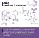 - Two Chelated Zinc: Doctor’s Recipes Zinc combines two chelated forms of zinc to work together to achieve optimal results.* Zinc picolinate, the most bioactive form, and Zinc gluconate, a highly absorbable form, both are efficient in fortifying the immune system and combating zinc deficiency.*