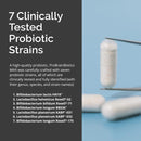 Bifidobacterium lactis HN019, Lactobacillus helveticus Rosell-52, Bifidobacterium bifidum Rosell-71, Bifidobacterium longum BB536, Lactobacillus plantarum KABP-031, Lactobacillus plantarum KABP-032, Bifidobacterium longum Rosell-175, vegetable cellulose (vegan capsule), microcrystalline cellulose, acacia gum, magnesium stearate.
