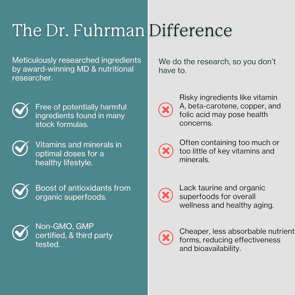 - Doctor-Developed, Science-Backed – Designed by Dr. Fuhrman, a board-certified family physician and leading nutritional researcher, this prenatal multivitamin is free from vitamin A, beta-carotene, copper, synthetic folic acid, and other potentially harmful ingredients. Vegan, science-backed, and made for optimal safety.
