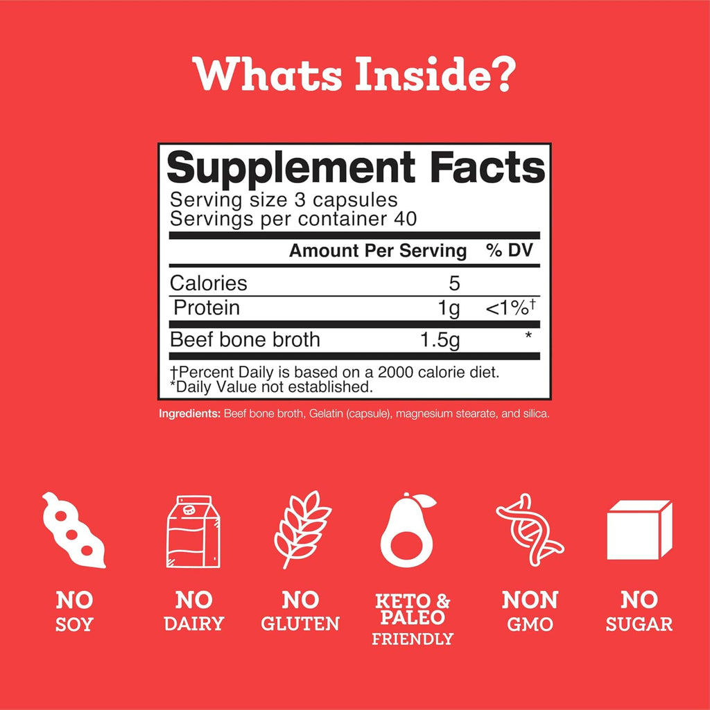 - CLEAN & CONVENIENT – No prep, no mess, no taste—just powerful bone broth benefits in an easy-to-take capsule. Perfect for travel, work, or home with zero additives or fillers