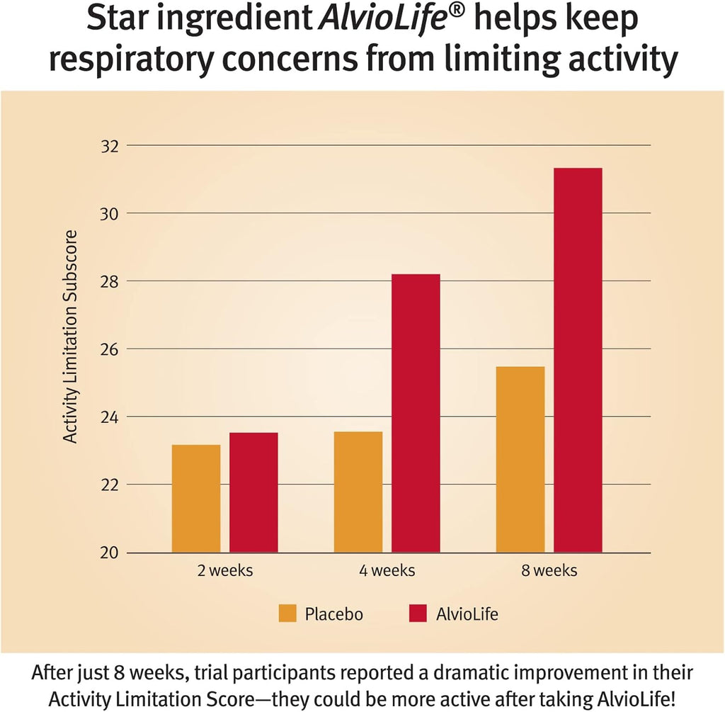 - ULTIMATE SUPPORT FOR EASY, CLEAR BREATHING & OPEN AIRWAYS. Features a unique combination of clinically validated key ingredients AlvioLife, AP-Bio, and Black Seed Oil with quercetin and astragalus. The star ingredient, AlvioLife, has been shown in a clinical study to be effective in helping maintain clear airways and breathing, normal lung function, promote a healthy inflammatory response, and an overall respiratory system.