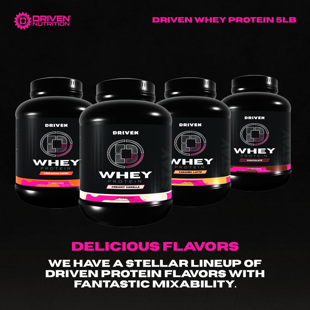 - Driven Whey is packed with 23 grams of protein per serving and is rich in all the needed branched chain amino acids (BCAAs).