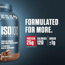 Dymatize ISO100 derives its name from its protein source, 100% Whey Protein Isolate. Unless you are in the medical profession, you have probably never seen protein like this before.Most companies "claim" they use Whey Protein Isolate, but after one serving of Dymatize ISO100 you can instantly see, taste and even feel the difference! This Whey Protein Isolate has been processed to the zenith of perfection, 100% hydrolyzed and instantized and taken through no less than 5 quality controlled steps. Both lactose and fat have been removed from ISO100, leaving you with nothing but the most easily digested, assimilated and most bio-available source of protein on the market.It's known that maximum protein utilization is essential to aiding muscle recovery and maintaining a positive nitrogen balance, which is critical during periods of intense training. There is no higher standard of protein than ISO100, so feel confident that you will be feeding your muscles to their fullest potential!Check the stats: each serving has an astonishing 24 grams of protein, with "1" Carb & "0" Fat. Look closer. You will see that all this is in a serving size of about 28 grams, making ISO100 86% protein by weight! Nothing out there matches this formula, nothing even comes close.The meticulous processing of Dymatize Whey Protein Isolate gives you "instant mixability" in its true form. You won't believe how quickly Dymatize ISO100 goes into solution. And, because of its ultra-purity and zero lactose, Dymatize ISO100 could be the easiest protein to digest on the market today.Don't forget, with "1" carbohydrate, Dymatize ISO100 is perfect for low carb diets. ******PLEASE NOTE THAT PACKAGE MAY VARY****PRODUCT HAS GOT NEW LABEL.