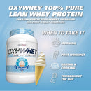 OxyWhey is for ANYONE looking for the best quality pure whey protein with added health, vitality, and wellness benefits*. Preferably breakfast time (after morning cardio), and mid-afternoon for a protein boost of energy, or any other time you're craving the delicious goodness of OxyWhey. STEP 1: ADD 1 SCOOP OF OXYWHEY. STEP 2: ADD 8 OZ OF ICE-COLD WATER OR MILK. STEP 3: SHAKE IT IN AN EHPLABS SHAKER.