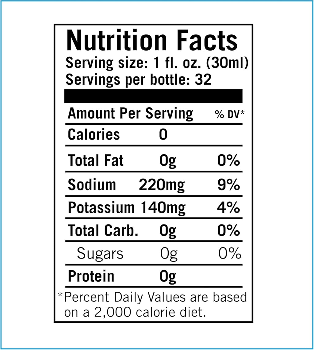 - Zero-calorie, naturally flavored electrolyte liquid concentrate