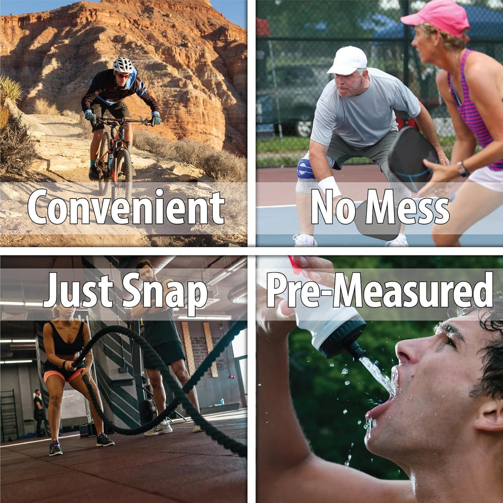 - PRE-MEASURED SINGLE SERVE SNAP PACKS - Convenient, no mess; just snap and go. One snap pack per 32 oz of water