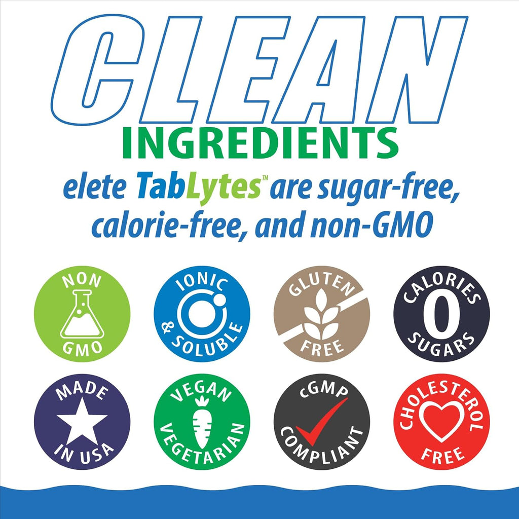 - Clean Ingredients: Like all elete products, elete Tablytes are non-GMO, Sugar Free, and Calorie Free