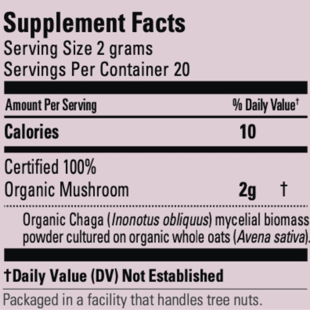 - POWER + BENEFITS: Harness the strength and vitality of CHAGA Mushroom with our finely milled powder. When incorporated into your daily routine, Chaga supports your mind, body + spirit.