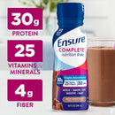 Get complete, balanced nutrition with Ensure COMPLETE nutrition shakes. Each tasty, ready-to-drink shake has 30 grams of protein, 25 vitamins and minerals, and 350 calories. It also has antioxidants (vitamins C & E and selenium) to support immune health. Enjoy Ensure COMPLETE after a workout, as a convenient meal replacement, or as a nutritious snack to help fill nutrition gaps in your diet. You can also take Ensure on the go for convenient nutrition when you want it, or add it to a variety of recipes. Try all 3 delicious flavors: Milk Chocolate, Vanilla, and Strawberry. These shakes are kosher, halal, and suitable for lactose intolerance.* * Not for people with galactosemia. † Contains 8 grams of total fat per 10-fl-oz serving.