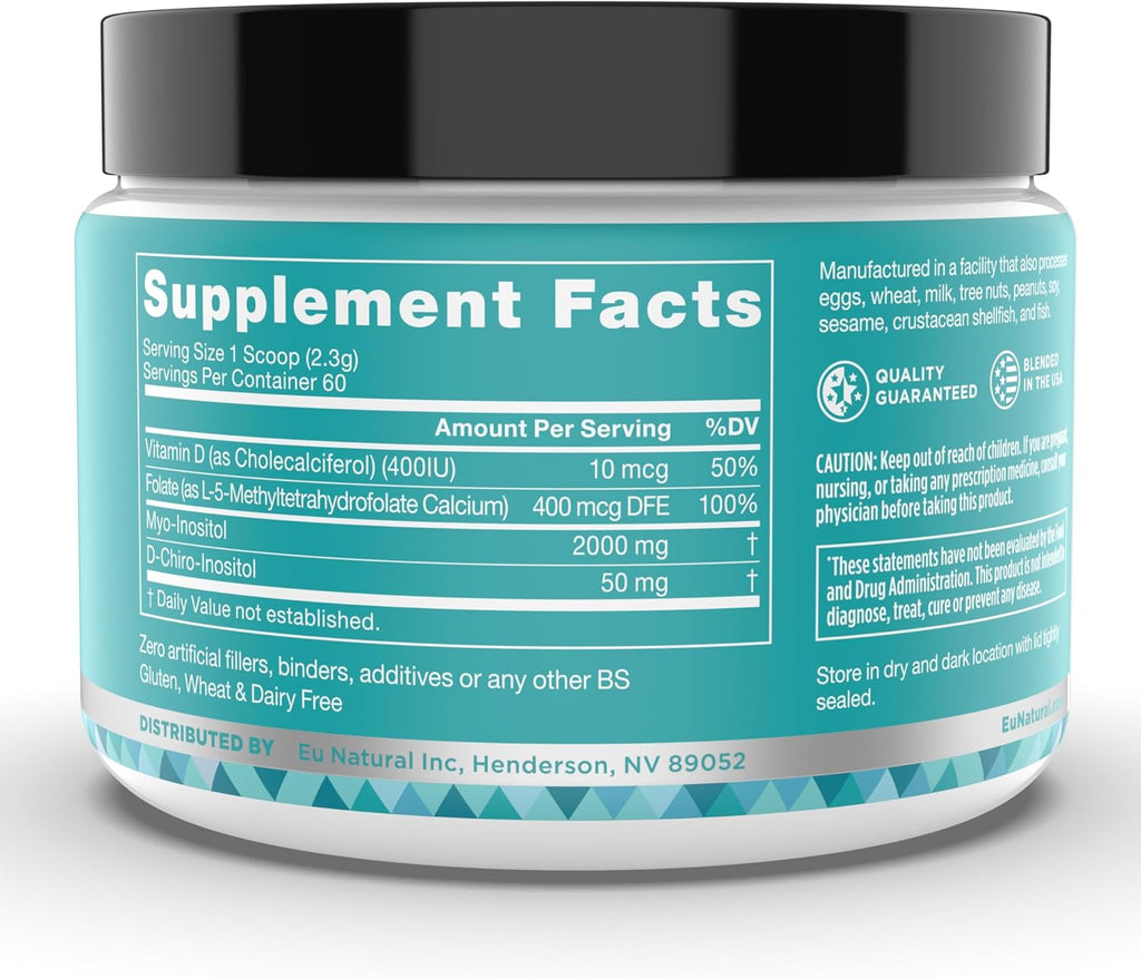 - PREMIUM MYO-INOSITOL & D-CHIRO INOSITOL POWDER: Elevate your health with our top-tier MyoInositol & D-Chiro Inositol Powder, formulated to support hormonal balance, reproductive health, and overall wellbeing. Each serving delivers a potent 4000 mg of Myo-Inositol and 100 mg of D-Chiro Inositol (40:1 ratio), paired with essential Vitamin D and Folate (as Methylfolate) to enhance absorption and efficacy. This unflavored powder is versatile and easy to use- just add two scoops to your favorite drink, hot or cold, sweet or salty.