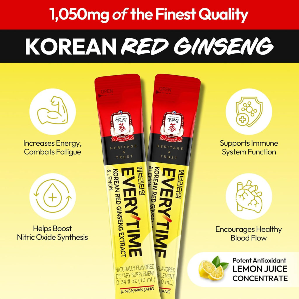 - PORTABLE & GREAT FOR PICK ME UP. Feeling drained? Get the boost without the crash with Everytime! Each compact red ginseng liquid stick fits effortlessly into your routine—whether you're at work, hitting the gym, or traveling. Each 0.34 fl oz (10ml) stick delivers a convenient 1-tablespoon serving—just one a day for an easy boost, where great taste meets function!
