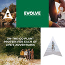 Evolve brand. Good. Simple. Protein. Evolve Protein Shakes are a real, vegetable-based and plant powered protein source that provides 20g of protein for sustained energy to help support your active lifestyle. Evolve Protein Shakes are made with only the highest-quality, North American grown, inherently Non-GMO pea protein. Peas are used as a companion rotational crop, a practice that returns much-needed nitrogen back to the soil. Now that's something we can all feel good about. Evolve Protein Shakes are: Gluten free, soy free and dairy free. Highly nutritious and environmentally delicious. Made with only 9-10 essential ingredients non-GMO and free of artificial flavors. an excellent source of non-GMO pre-biotic fiber which supports digestive health. low in fat and an excellent source of plant based protein, calcium and a good source of iron.