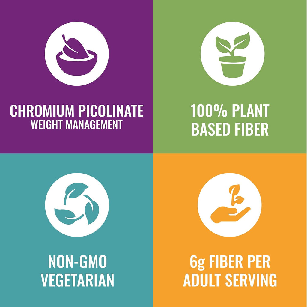 - EASY WAY TO SUPPORT WEIGHT MANAGEMENT: In addition to having chicory root, an excellent source of 100% plant-based fiber, our gummies also include, chromium picolinate, which supports your metabolism and weight management.