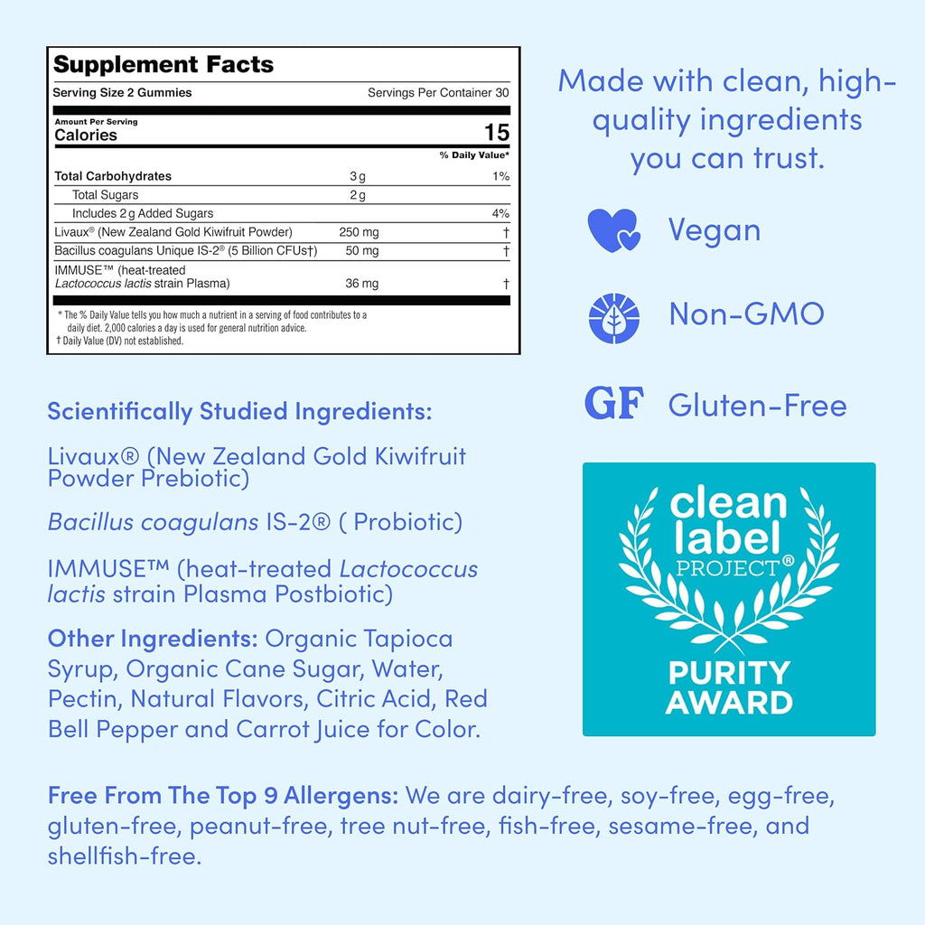 - Balanced Gut, Healthy Digestion: Our 3-in-1 tribiotic fights mild and occasional constipation so you can feel better, lighter, and more energized. Made with Livaux, a clinically studied prebiotic that supports regular bowel movements.
