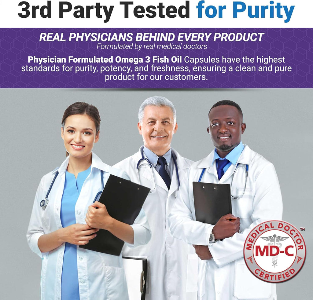 - 3RD PARTY PURITY TESTED – Physician Formulated Omega 3 Fish Oil Capsules are 3rd party tested and IFOS 5-Star certified to be not only pure but environmentally sustainable. A win for you and a win for the environment!