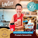 - DITCH THE BLENDER: FlavCity’s Chocolate Peanut Butter Protein Smoothie is a delicious and nutrient-dense blend of peanut butter and real cocoa. We’ve simplified the smoothie-making process by incorporating all the high-quality ingredients you love in each scoop — no add-ins needed! With 25g of protein per serving, our complete protein smoothies are sure to be your new go-to post-workout beverage or snack. 20 servings.