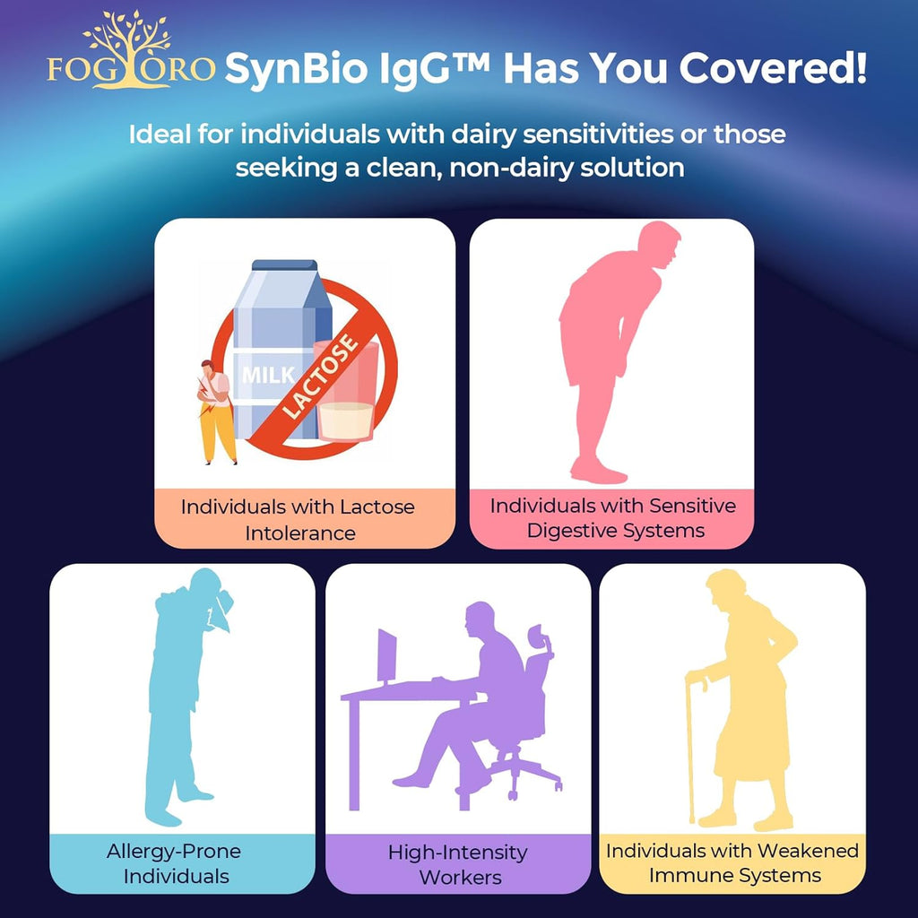 - Premium Immunoglobulin Supplement: SynBioIgG is a high-quality powder featuring a powerful combination of IgG, IgM, and IgA, important immunoglobulins for overall wellness. Enriched with L-Glutamine and N-Acetyl-D-Glucosamine, this formula delivers key nutrients to complement your body’s natural processes and overall well-being