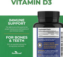 - Daily Vitamin D3 10000 IU for Immune, Bone, and Teeth Support – Each daily capsule delivers 250 mcg (10,000 IU) of bioavailable D3 vitamin to support immune system function, calcium absorption, bone density, and healthy teeth. Ideal for those looking for a daily high dose vitamin d 3 10000iu option recommended by professionals for those needing consistent daily support in maintaining their Vitamin D 3 levels, A high potency vitamin D supplement for men and women seeking daily vit d balance*