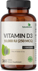 - High Quality & Great Value: Futurebiotics Vitamin D3 provides a potent 10,000 IU of D3 per tablet. We strive to support your good health and well-being through high quality supplements at the best value.