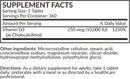 Vitamin D3 (as Cholecalciferol) Other Ingredients: Microcrystalline cellulose, stearic acid, croscarmellose sodium, magnesium stearate, silicon dioxide, hydroxypropyl methylcellulose.