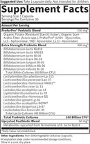 PreforPro® Prebiotic Blend: Organic Potato [Resistant Starch] (tuber), Organic Acacia Fiber (A. senegal), PreforPro® (LH01 - Myoviridae, LL5 - Siphoviridae, T4D - Myoviridae, LL12 - Myoviridae); Extra Strength Probiotic Blend: Bifidobacterium lactis, Bifidobacterium lactis, Bifidobacterium lactis, Bifidobacterium breve, Bifidobacterium longum, Bifidobacterium bifidum, Bifidobacterium infantis, Lactobacillus plantarum, Lactobacillus paracasei, Lactobacillus rhamnosus, Lactobacillus casei, Lactobacillus acidophilus, Lactobacillus salivarius, Lactobacillus rhamnosus, Lactobacillus gasseri, Lactobacillus acidophilus, Lactobacillus bulgaricus, Lactobacillus brevis; Upcycled Postbiotic Blend: Metabolites upcycled from fermentate of B. lactis BL818. Other Ingredients: Non-GMO Vegetable Cellulose (capsule). Made without dairy or soy ingredients, peanut, tree nuts or shellfish. Manufactured in a facility that also processes egg, soy, dairy, wheat, fish, shellfish and tree nuts.