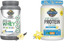 The Garden of Life Sport Whey Protein Powder and Organic Vegan Protein Powder bundle provides complementary protein sources to support muscle growth, repair, and recovery. The whey protein isolate contains 24g of protein per serving from grass-fed, hormone and antibiotic-free Irish cow's milk to refuel muscles after intensive training. It is non-GMO verified and NSF Certified for Sport with no banned substances. Over 6g of BCAAs and 4g of glutamine aid workout recovery. The organic vegan protein has 22g of complete plant-based protein per serving including BCAAs to rebuild muscle, plus 5g fiber to improve satiety. The vanilla flavor provides a delicious, smooth texture. It contains probiotics and digestive enzymes for absorption and gut health. With dairy-based and plant proteins, this bundle offers versatile high-quality protein shake options to support energy, lean muscle growth, workout recovery, and immune health for active men and women. The third-party certifications confirm the clean, transparent sourcing and production. Together these two proteins complement a healthy lifestyle and fitness regimen.