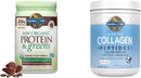 Garden Of Life, Powder Protein Greens Chocolate Organic, 22 Ounce Your whole family will love Raw Organic Protein & Greens, a delicious and smooth combination of plant based protein and veggies, along with probiotics and enzymes. Featuring 20 grams of protein per serving from a unique blend of vegan sources―Organic pea, sprouted brown rice, chia, navy bean, lentil bean and garbanzo beans―plus six nutrient-rich, energizing vegetables and greens: Organic alfalfa grass juice, spinach, kale, broccoli, carrots and beets. Raw Protein + Greens is a scrumptious way to get your protein and greens in just one scoop. It’s CLEAN, TRACEABLE and PURE: Third-Party tested and Certified USDA Organic, Non-GMO Project Verified, NSF Gluten Free, Vegan, Kosher, Informed Choice and Carbonfree. Available in three incredibly edible flavors (Chocolate Cacao, Lightly Sweet and Vanilla), mix up your shakes and smoothies with this yummy Garden of Life protein for men, women and kids. †These statements have not been evaluated by the Food and Drug Administration. This product is not intended to diagnose, treat, cure or prevent any disease. Garden of Life Grass Fed Collagen Peptides Powder – Unflavored Collagen Powder for Women Men Hair Skin Nails Joints, Hydrolyzed Collagen Protein Supplements, Post Workout, Paleo & Keto, 28 Servings Grass Fed Collagen Peptides provides an easy way to add highly absorbable collagen peptides to your daily diet without taking pills or capsules. This unflavored powder is easily soluble and highly bioavailable to the body—making it the perfect multi use nutritional boost for shakes, smoothies or to be used in baking. One scoop conveniently delivers 20g collagen peptides (Type I and Type III) and 18g protein; simply mix a scoop in 8oz of liquid. Great for anyone looking to improve skin elasticity, nail and hair strength and joint mobility.