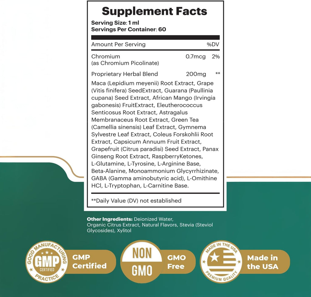 GlucoTonic is a plant-powered liquid supplement designed to support your daily wellness routine through a balanced blend of botanicals, nutrients, and amino acids. With just one milliliter per day, it offers a straightforward and natural way to stay on track with your wellness goals. This formula includes chromium picolinate, along with 24 carefully selected ingredients such as maca root, grape seed extract, African mango, guarana, gymnema leaf, green tea, and a variety of supportive amino acids like L-Glutamine and L-Tyrosine. These ingredients are well-regarded in traditional wellness practices and are brought together to offer a broad spectrum of support for energy, focus, and metabolic balance. GlucoTonic is sweetened with stevia and xylitol for a clean taste and is completely free from GMOs, artificial stimulants, and synthetic additives. Its liquid format makes it an easy alternative to pills or powders—just measure, take, and go. Whether you take it directly or mix it with water, the formula is designed for smooth daily use. When taken consistently, GlucoTonic can help you feel more centered and balanced in your day-to-day life. It’s recommended to use the product regularly for several weeks as part of a long-term wellness plan. With its natural flavor and convenient dropper, GlucoTonic makes it easy to stay committed to feeling your best.