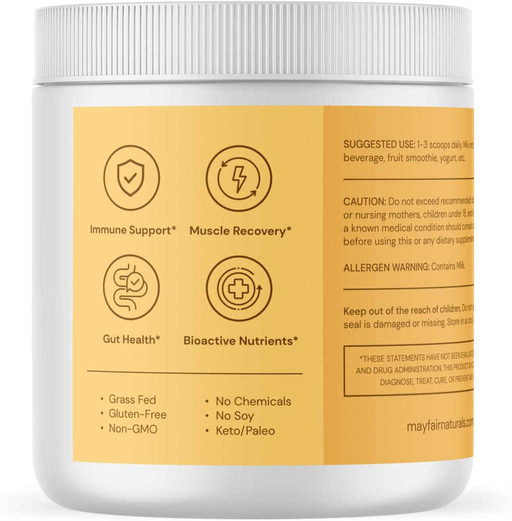 Mayfair Naturals Goat Milk Colostrum Powder is a premium supplement derived from grass-fed, gluten-free goats milk. Each 120-gram container is packed with bioactive nutrients essential for immune support and gut health. This non-GMO formula is produced in the USA in a GMP Certified facility, ensuring unparalleled quality. The product is third party tested to guarantee safety and efficacy. It supports not only gut health but also muscle recovery, making it an ideal choice for those on keto or paleo diets. Free from chemicals and soy, this colostrum powder is a natural way to boost your wellbeing. Enhance your health regimen with Mayfair Naturals. It's perfect for individuals seeking a natural, potent supplement to aid in overall health maintenance. Whether you're looking to strengthen your immune system or accelerate muscle recovery, this goat milk colostrum powder delivers robust benefits.