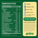 - No Cutting Corners: Grüns is plant-based and vegan. Our gummies are free from gluten, dairy, and nuts with no artificial additives. Available in low-sugar and sugar-free options. Every pack is made with the finest whole-food ingredients and produced using the highest quality manufacturing practices.