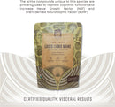 - Lion’s Mane: Contains organic Hericium erinaceus fruit body extract with 30% Beta-glucans, 2% Erinacines, and 2% Hericenones for enhanced cognitive function and nerve growth.