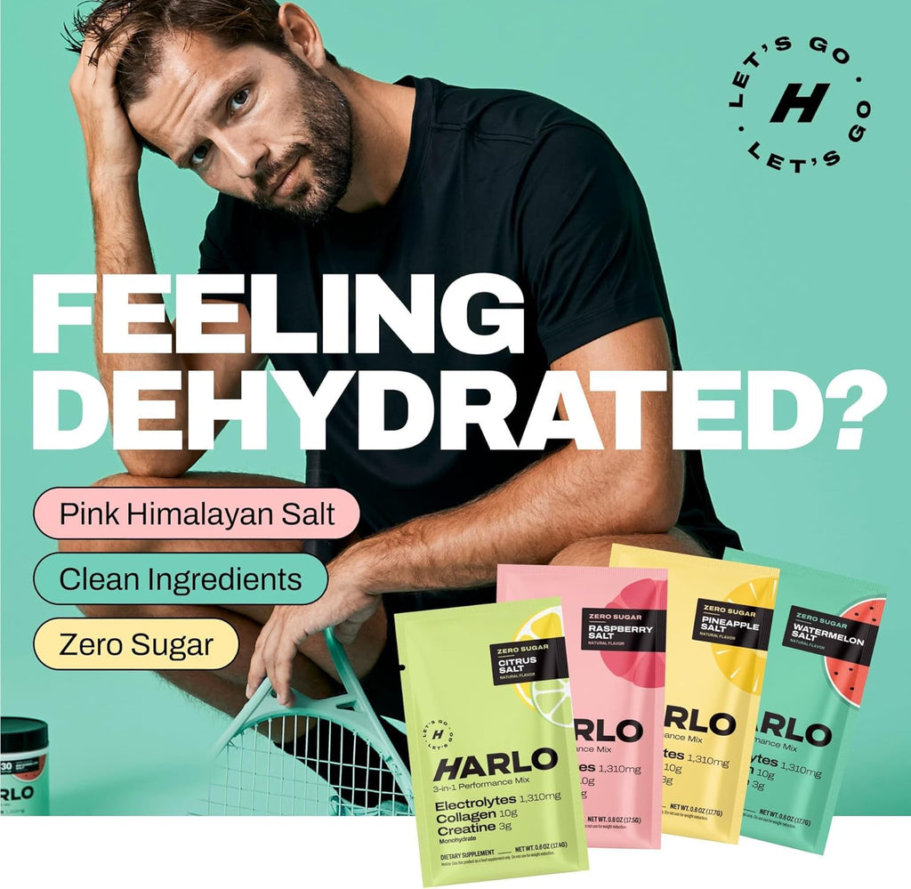 - Total Body Wellness: Harlo’s raspberry salt drink combines hydration with collagen to support skin, joint health, & overall well-being. Elevate your wellness journey with Harlo and experience the difference in your performance, recovery, & vitality