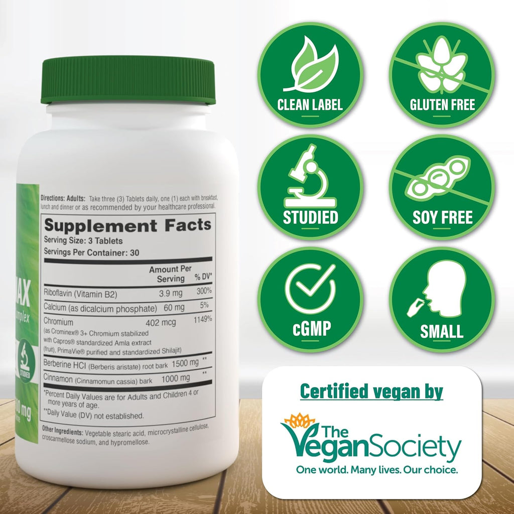 - Potent: Experience the exceptional potency of GlucoPro Max. Our scientifically crafted formula combines clinically studied nutrients at the clinical dose, including Berberine 1,500mg, Cinnamon 1,000mg, Chromium as CROMINEX 3+ 402 mcg, and Riboflavin 3.9 mg. Each ingredient is thoughtfully selected to support optimal synergy. Trust in the precise amounts and quality of our nutrients to unlock your body's full potential. Elevate your well-being with GlucoPro Max.