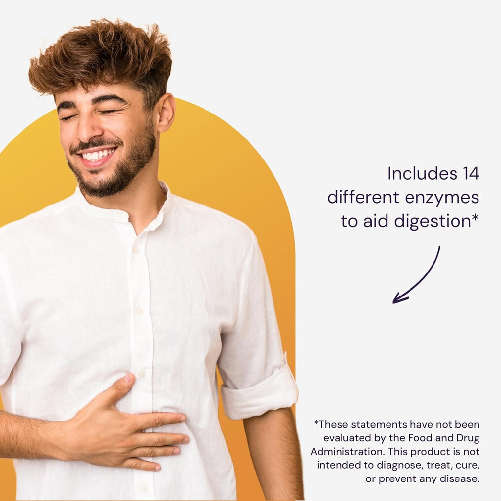 - Comprehensive Digestive Support – Formulated with 14 powerful enzymes to help break down proteins, fats, carbs, sugars, and grains for better nutrient absorption.*