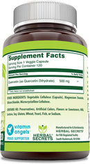- Quercetin 500 Mg per Serving Supplement - Non-GMO, Gluten Free, Third Party Tested - Manufactured in accordance with GMP Standards - Proudly made in the USA with Guaranteed Purity & Potency