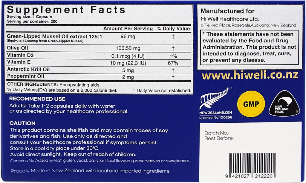 - May support joint comfort and mobility with high content Green Lipped Mussel Extract Oil 12,000mg per capsule